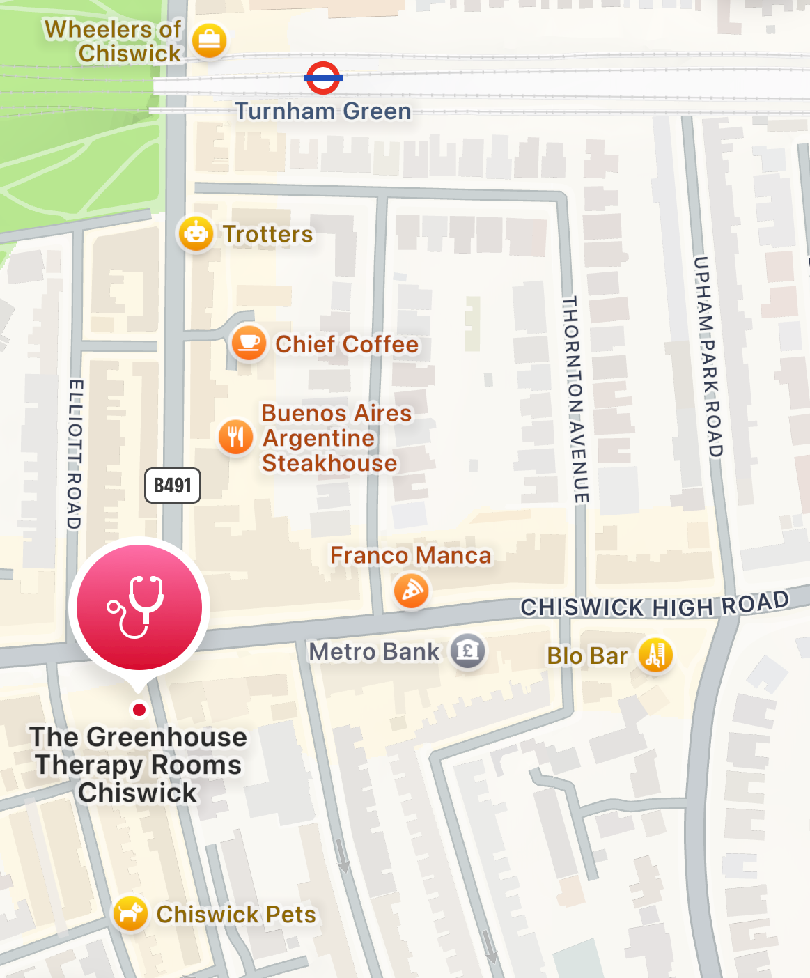 The clinic can easily be accessed by tube, bus and car. Turnham Green tube station is a 5 min walk away. There are multiple bus routes serving the area and local parking is close by.